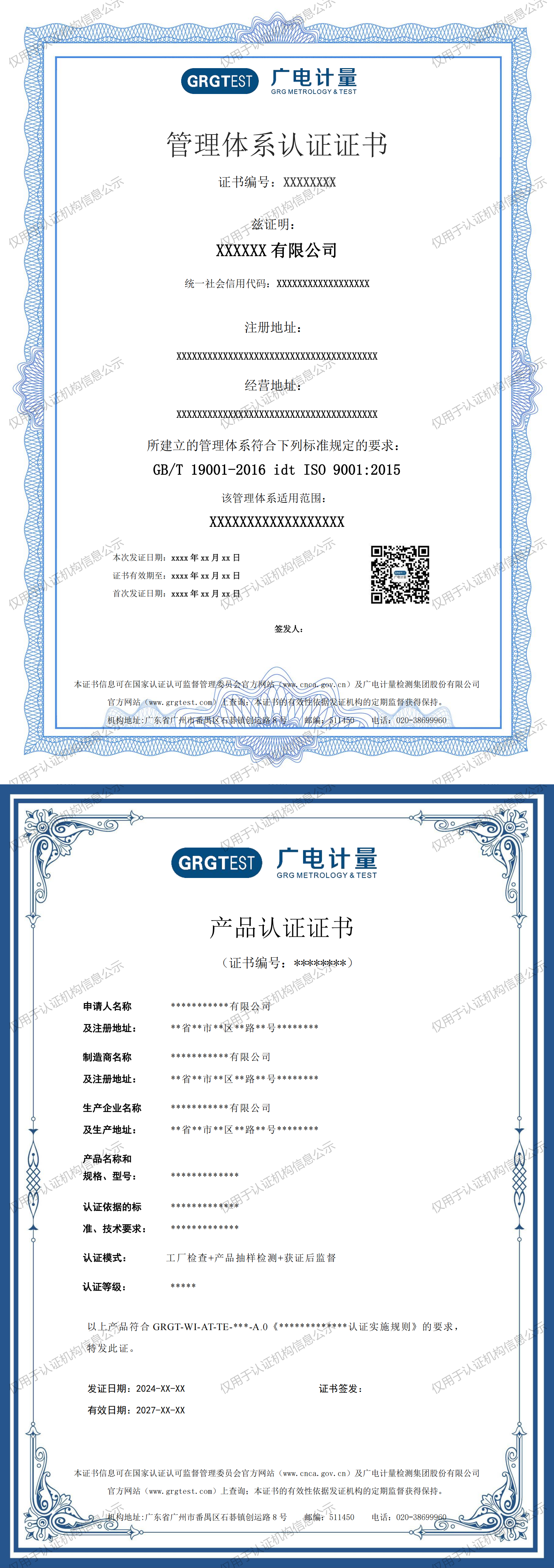 認(rèn)證證書(shū)樣式(管理體系+產(chǎn)品認(rèn)證)