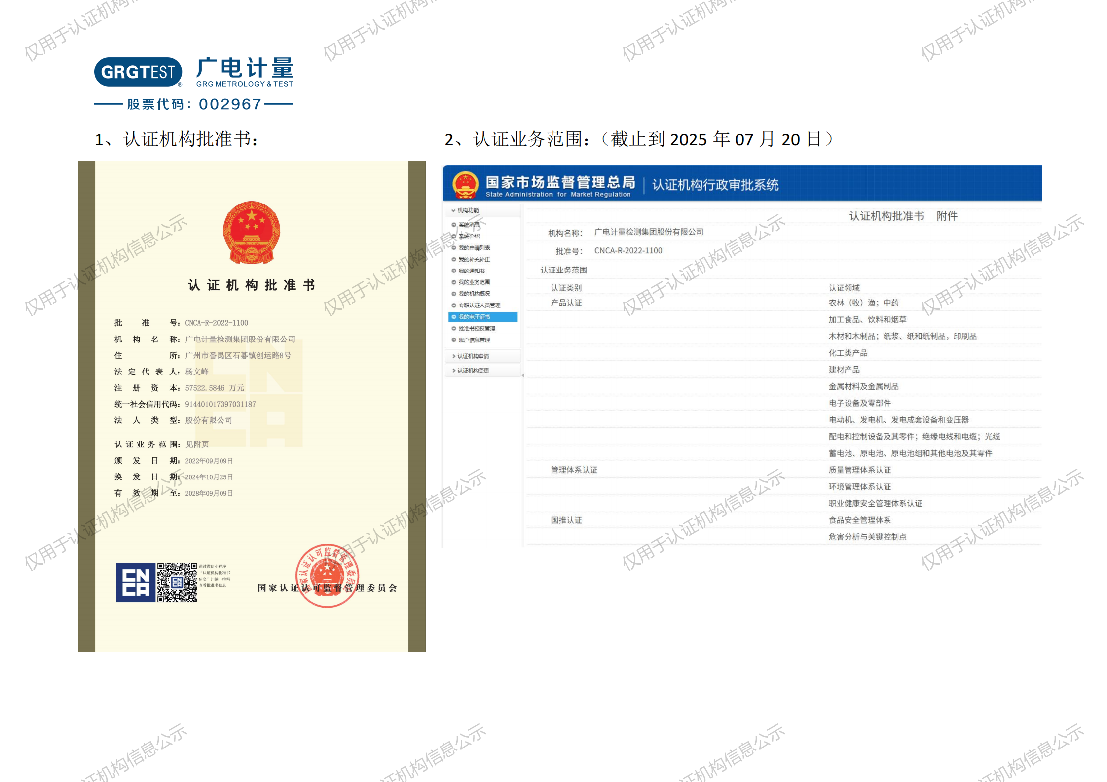廣電計(jì)量獲批的認(rèn)證資質(zhì)及認(rèn)證業(yè)務(wù)范圍
