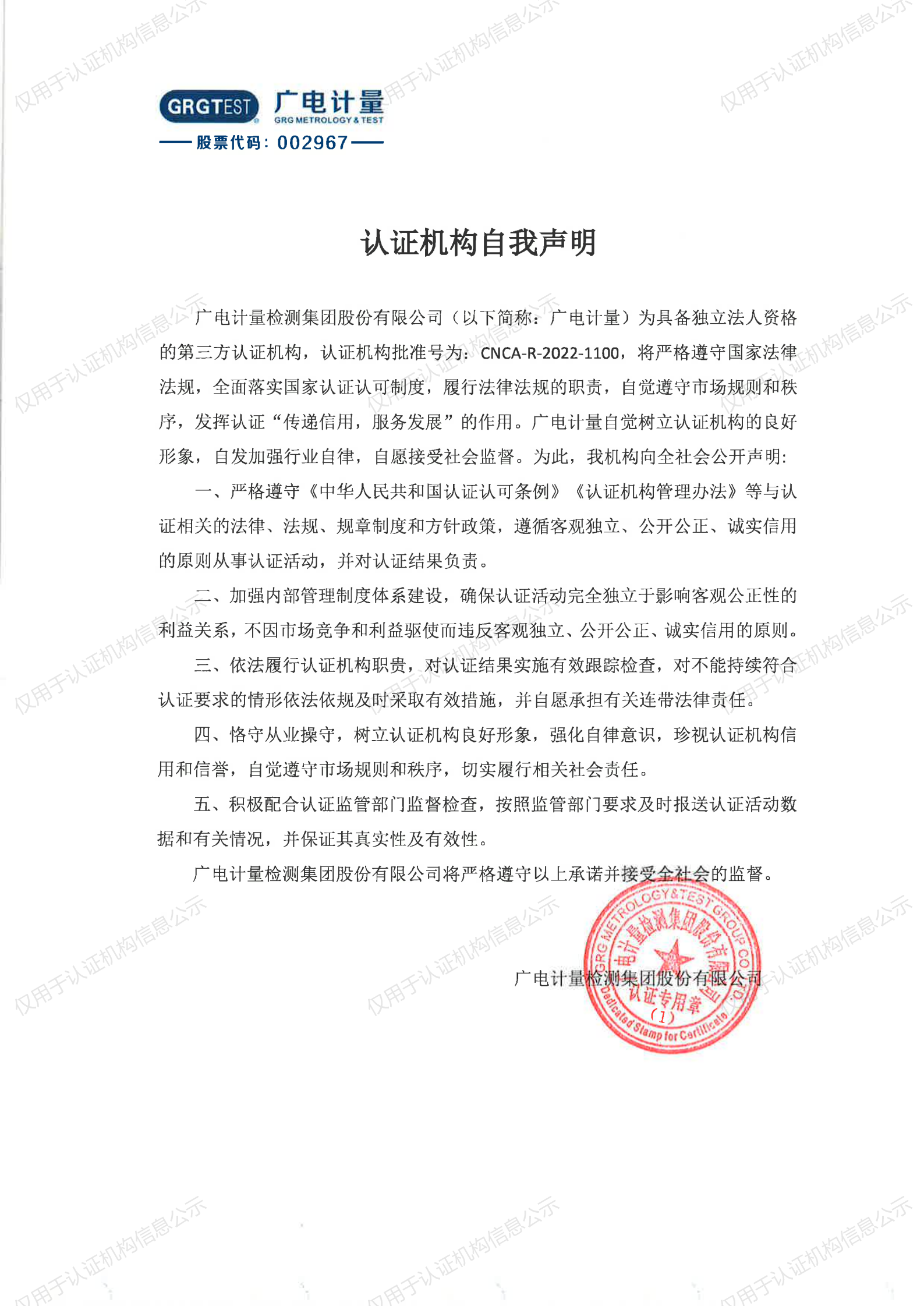 認(rèn)證機(jī)構(gòu)自我聲明