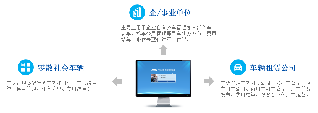 產(chǎn)品功能:實(shí)現(xiàn)用車管理規(guī)范化、信息化、智能化,達(dá)到陽(yáng)光用車,降低車輛管理成本的目標(biāo),為企業(yè)公務(wù)車輛、委外車輛、私車公用三類用車管理模式提供信息化解決方案,解決車輛管理難題。