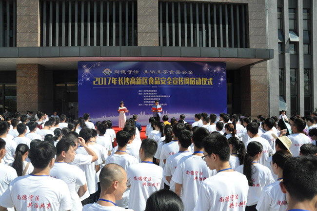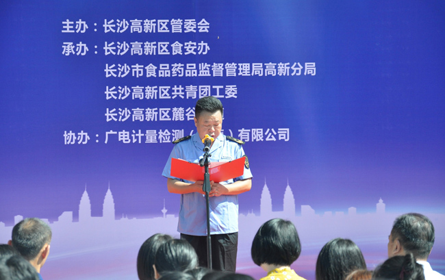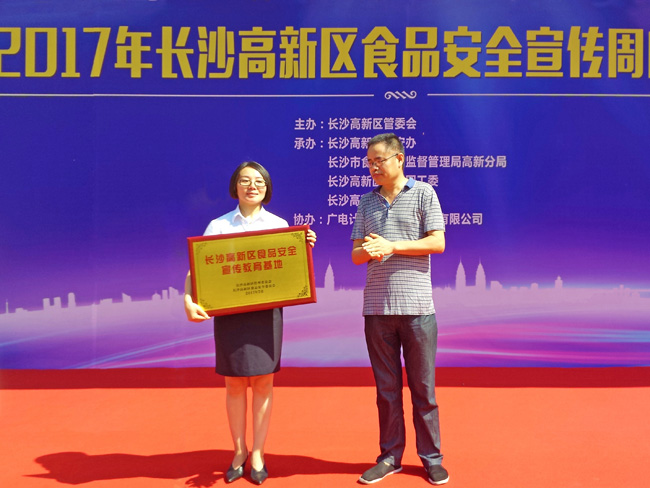 7月6日,2017年長沙高新區食品安全宣傳周暨長沙高新區食品安全宣傳教育基地授牌儀式,在高新區廣電計量大廈廣場前隆重舉行,來自長沙高新區管委會、長沙市食藥監局、長沙高新區食安辦、長沙市食藥監局高新分局、長沙高新區共青團工委、麓谷街道等相關政府領導,攜食品行業代表及食品安全志愿者、周邊街道群眾逾300人,共同見證長沙高新區食品安全宣傳教育基地落戶廣電計量。