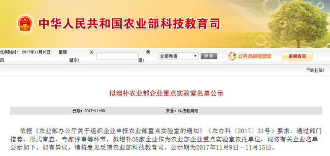 近日,農(nóng)業(yè)部公示了“十三五”規(guī)劃期最新擬增補的38家農(nóng)業(yè)部企業(yè)重點實驗室依托單位名單,廣電計量全資子公司——廣電計量檢測(湖南)有限公司作為第三方計量檢測機構(gòu)成功入選。