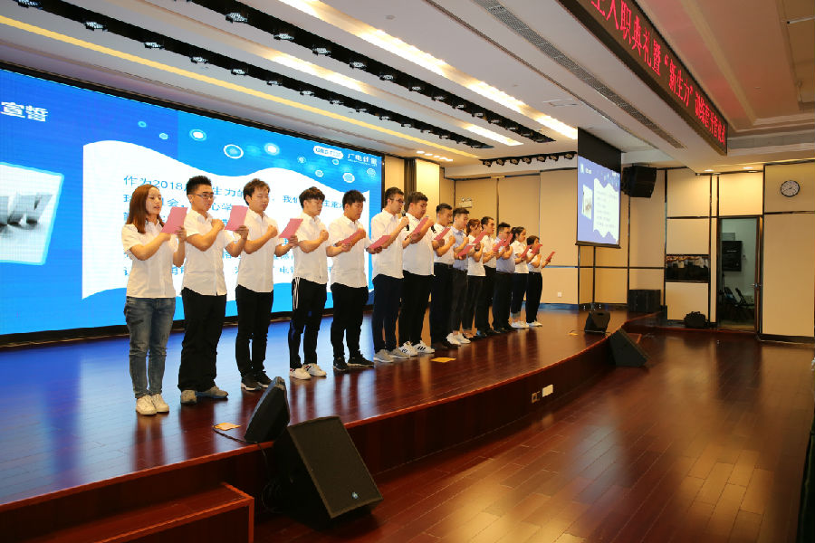 薪火相傳,生生不息。為幫助應屆生迅速成長勝任崗位需求,廣電計量“新生力訓練營”建立了完善的應屆生系統培養體系,為每一位應屆生安排了領路人——優秀師傅。會上,師傅代表與應屆生代表先后上臺莊嚴宣誓,共訴決心。