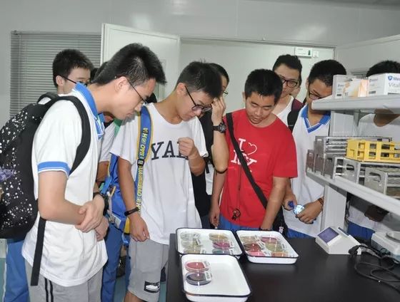 五顏六色的微生物培養皿吸引學生們駐足觀察