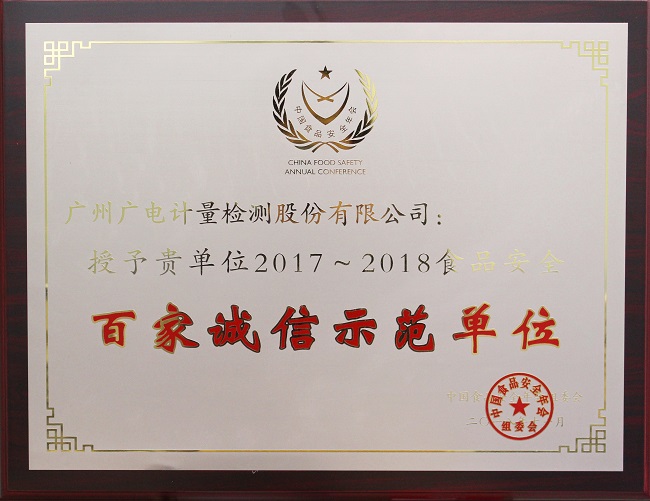 廣電計量獲評“食品安全百家誠信示范單位”