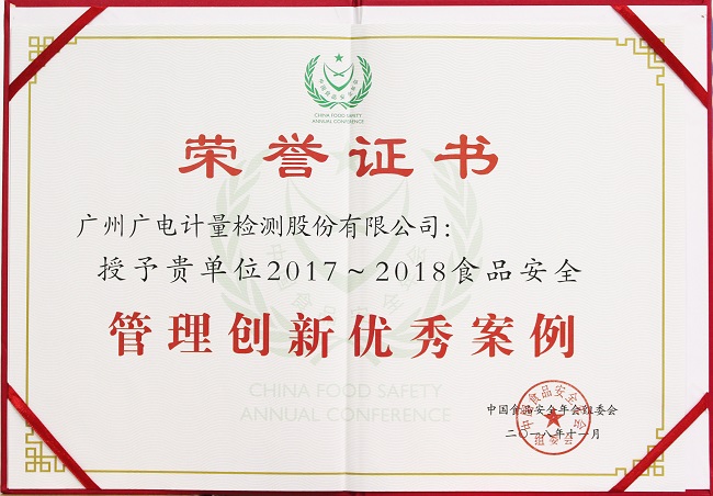 廣電計量獲評“食品安全管理創新優秀案例”