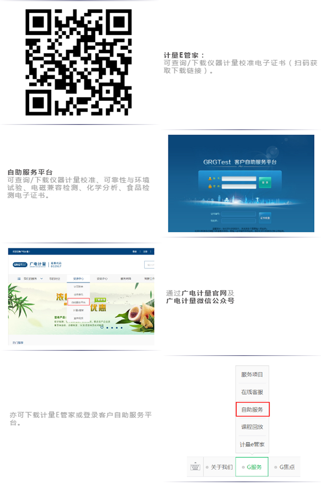 即日起廣電計量為客戶免費提供標準版的儀器設備管理軟件“計量E管家”,同時為客戶提供自助服務平臺(http://120.197.59.40:8086)、公司官網(www.languagetutor.cn)、微信公眾號等多種電子證書查詢、下載渠道。
