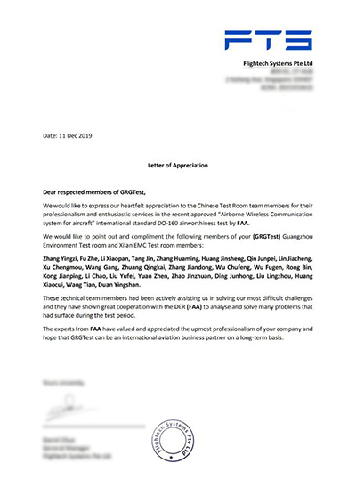 受飛天聯合(北京)系統技術有限公司(簡稱飛天聯合)和美國聯邦航空管理局(FAA)委托,廣電計量承接DO-160G的機載衛星通信系統適航認證試驗任務。公司發揮全國一體化管控優勢,調配西安、廣州、深圳試驗室資源立即成立FAA適航試驗項目組,組建技術骨干團隊擬定測試方案全力保障。