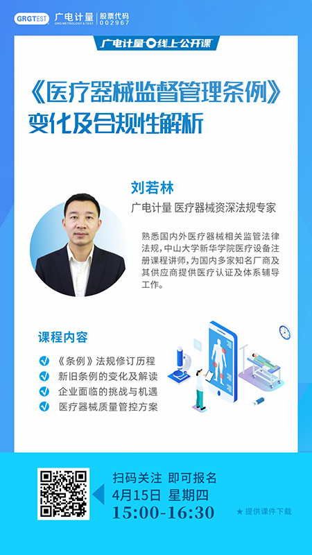 為了幫助企業更好地理解新舊《條例》的變化,了解監管法規的變化對企業的影響及監管思路的轉變,廣電計量醫療器械資深技術專家將圍繞新版《條例》進行全面解讀,從修訂歷程、變化解讀、對企業的影響及管控措施等方面著手,助力企業順勢而為,在新版《條例》的指引下乘風破浪。
