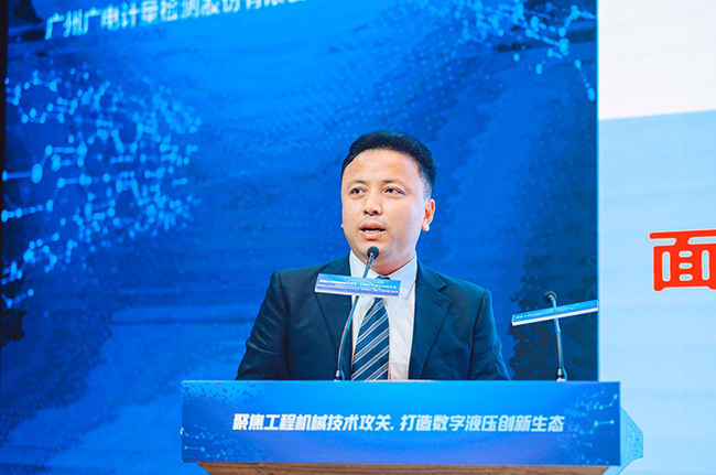 黃敦鵬作為承辦方代表出席并講話。他介紹,廣電計量依托領先的液壓元件試驗檢測技術能力、全國化實驗室服務網絡以及信息化技術管理能力,正積極推動液氣數智化產業聯盟的建設,從而構建數字液壓產業化和標準化發展能力,為數字液壓在高端工程機械行業中的應用提供平臺支撐。黃敦鵬表示,構建數字液壓技術生態標準體系是行業發展迫切需要,希望以本次會議為契機,搭建一個數字液壓技術行業的交流平臺,共同攻克這個典型的“卡脖子”技術,同時通過建立液壓行業標準,完善高端裝備制造技術配套,進一步鞏固和擴大湖南省工程機械產業的國際優勢,進一步推動我國工程機械產業升級,助力“中國制造”逐步邁向“中國先進智造”。