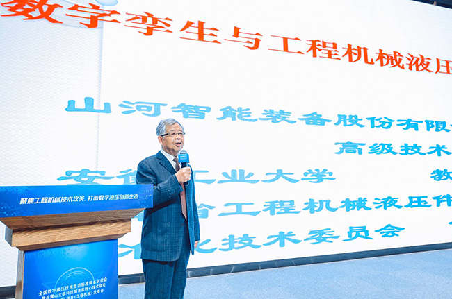 國家工程機械液壓件產品質量檢測監督中心(湖南)學術帶頭人、山河智能專家、安徽工業大學教授方慶琯作《數字孿生技術與工程機械液壓數智化》主題發言