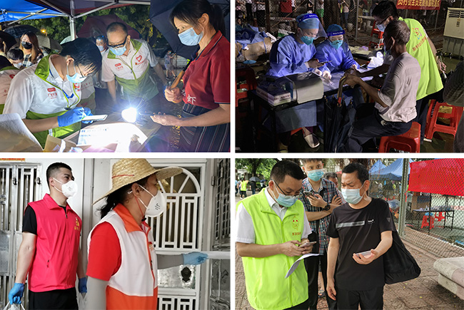 5月31日,為響應廣州市天河區大規模核酸檢測工作社區志愿服務的需求,廣電計量2小時內火速集結17名青年黨員、團員志愿者,組成青年抗疫突擊隊緊急支援天河區南富社區核酸檢測大排查工作。志愿者們當晚冒著大雨,在現場引導社區居民手機掃碼填寫登記受檢人信息,協助維持排隊秩序和分流人群,用實際行動為社區居民和醫護人員辦實事。