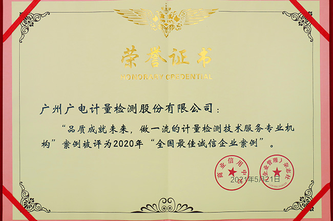 近期,國家級企業信用等級評價機構商業信用中心聯合中央級權威經濟期刊《企業管理》雜志社發布2020年全國優秀誠信企業案例,廣電計量《品質成就未來 做一流的計量檢測技術服務專業機構》誠信案例榮獲2020年“全國最佳誠信企業案例”,廣電計量黨委書記、總經理黃敦鵬被授予“全國優秀誠信企業家”榮譽稱號。
