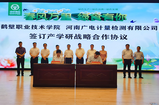 活動現場,河南廣電計量與鶴壁職業(yè)技術學院簽訂了產學研戰(zhàn)略合作協議。將以此為契機,逐步建立全方位、多層次、高效務實的合作機制,深度共建食品工程學院,結合該院綠色食品檢驗特色學科為社會輸出綠色食品檢驗高質量人才,護航并助力河南省綠色食品發(fā)展。