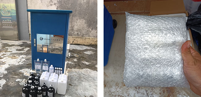 點位分布散、任務量大,前期準備工作尤為關鍵。在“硬件”方面,項目組首先統計各地任務量,提前采購所需的設備和耗材。結合車輛實際使用情況,項目組把部分無法攜帶耗材統一存放,根據項目進展以及每天統計耗材消耗速度,提前把所需耗材寄往監測點附近,完成遠程及時補給;在“軟件”方面,不同于常見的地表水監測任務,地下水監測對在線監測設備的取放方法、洗井設備(泵)的選擇及采樣時間等都要求極高。為提升采樣人員的專業技能,項目組多次組織實驗室內部通過遠程教學培訓,并與各市水文局溝通,安排公司技術人員跟隨工作人員到進行現場演練學習。