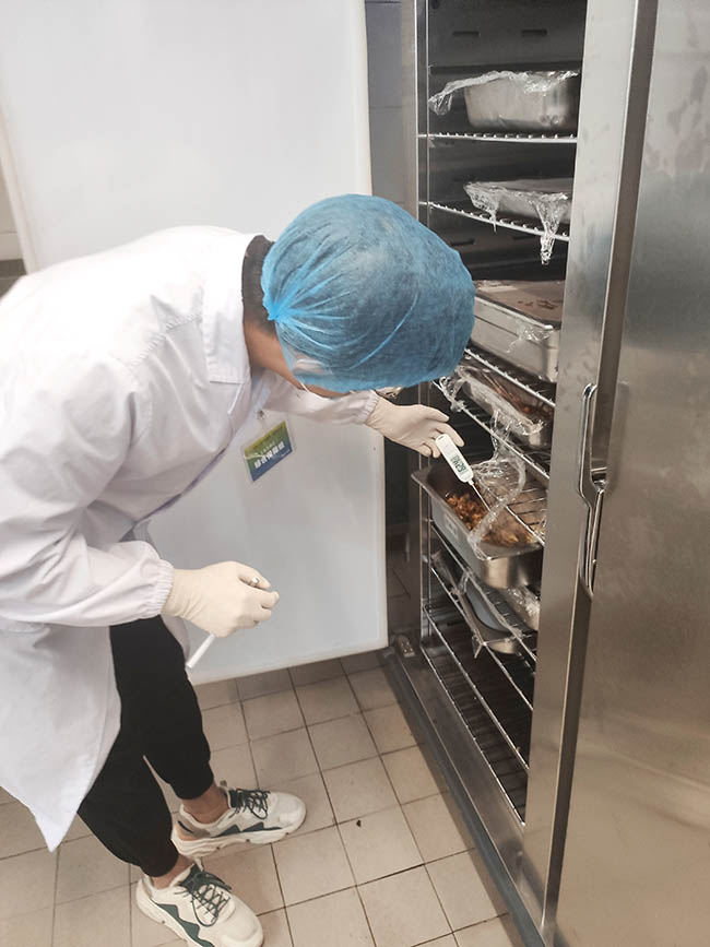 “我們檢測的項目主要是蔬菜水果農藥殘留、禽畜肉獸藥殘留、工器具潔凈度以及熱食菜品中心溫度等,從原材料到成品再到餐桌每一個環節都層層把關,餐餐必檢,力求食品安全零風險。檢測完成之后,會將結果及時反饋給監管部門人員,方便保障組及時了解相關信息。”參與此次任務的廣電計量食品快檢工程師何鵬介紹。