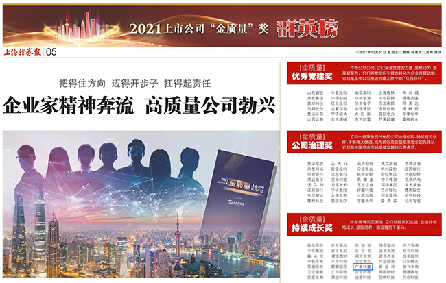 “金質(zhì)量”獎聚焦公司治理完備、成長性佳、具備科創(chuàng)力和社會影響力的上市公司,聚集行業(yè)內(nèi)有超凡遠見、卓越才能的公司掌門人,共同助推企業(yè)高質(zhì)量發(fā)展,夯實資本市場全面深化改革的“壓艙石”,已成為國內(nèi)上市公司領(lǐng)域內(nèi)最權(quán)威、最具影響力的獎項之一。