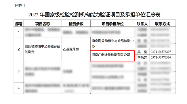 3月25日,國家市場監督管理總局發布了《關于開展2022年國家級檢驗檢測機構能力驗證工作的通知》(市監檢測發〔2022〕19號),決定在社會重點關注的部分檢驗檢測領域組織開展2022年國家級檢驗檢測機構能力驗證工作。河南廣電計量檢測有限公司(簡稱:河南廣電計量)在河南省市場監督管理局的大力推薦下,成為此次國家級能力驗證項目承擔單位之一,將與南京海關動植物與食品檢測中心聯合承擔“食用植物油中乙基麥芽酚的測定”項目的方案設計、組織實施及結果評價等工作,實現河南省第三方檢測機構承擔國家級能力驗證“零的突破”。