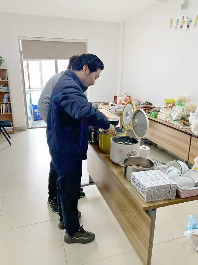 人手問題解決后,另一個挑戰(zhàn)擺在了大家面前——如何保障嘉定、浦東場地共四十多名留企員工的溫飽、休息等生活需求?此時,企業(yè)管理副經(jīng)理張雨燊義無反顧站了出來。為保障員工正常生活,他從3月中旬起就堅守崗位,并在3月底開始,吃、住皆在公司門衛(wèi)室,默默付出卻從未抱怨。每天除了安排員工核酸檢測、抗原自測,對辦公場所進行3次以上消殺,還要關注園區(qū)政策和網(wǎng)絡上各種消息動態(tài),爭取政府物資補助,尋找物資供應渠道進行采購,保障防疫工作的順利開展、公司補給、實驗室正常運營。“在這個特殊時期,公司上下一心,每個人都貢獻出了力量共渡難關。安全管理是我的本職工作,我曾對公司和同事做出過承諾,就必須把承諾兌現(xiàn)。”張雨燊說。