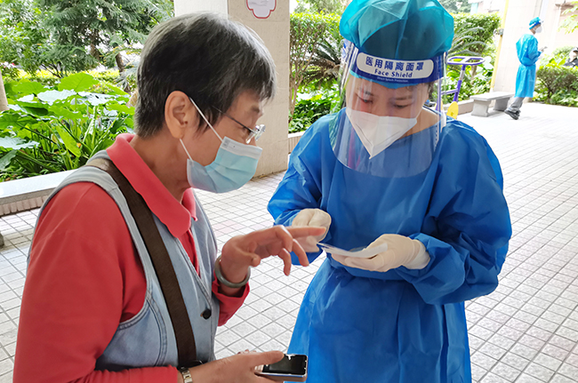 市場(chǎng)綜合黨支部黨員趙敬居住在白云區(qū),此前早已下沉社區(qū)多次支援,在4月8日當(dāng)天更是從晚上8點(diǎn)連續(xù)戰(zhàn)斗到第二天早上6點(diǎn)。“累一點(diǎn)不算什么,黨員就是要關(guān)鍵時(shí)刻站出來(lái),重要時(shí)刻沖上去,這是我應(yīng)該做的。”趙敬說(shuō)。這次來(lái)到白云支援點(diǎn),她主要負(fù)責(zé)維護(hù)排隊(duì)秩序,一邊檢查居民健康碼和核酸碼,一邊關(guān)注老人、孕婦等群眾,把他們指引到綠色通道??此坪?jiǎn)單、重復(fù)的工作,卻時(shí)時(shí)考驗(yàn)著志愿者們的耐心、細(xì)心。在這場(chǎng)爭(zhēng)分奪秒的疫情阻擊戰(zhàn)中,每個(gè)人都是不平凡的“逆行者”。