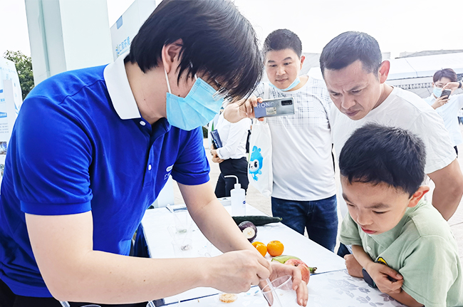 在新能源與清潔環保產業展區,湖南廣電計量針對市民日常生活中遇到的生態環境、食品安全等謠言疑問,特別設置空氣質量檢測體驗區、噪聲測試區、果蔬農藥殘留快檢區,為參觀者提供現場檢測、實驗演示和講解咨詢等公益服務,吸引大批市民駐足觀看交流。技術人員圍繞公眾關心的生態環境相關問題,從專業角度為市民提供免費咨詢,進一步提升公眾生態環境保護意識。