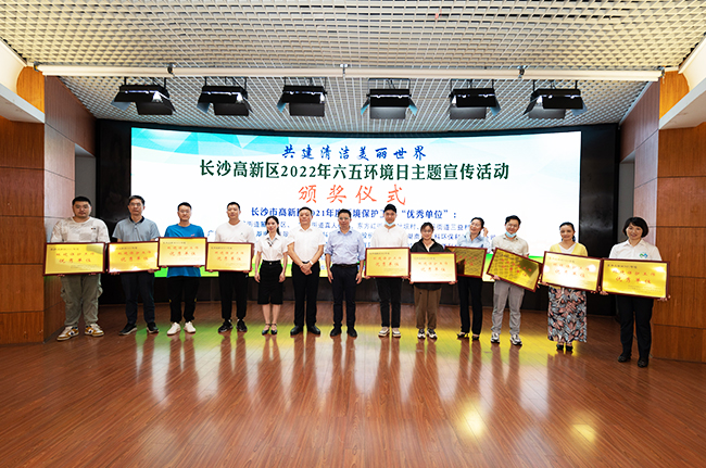 當天,長沙高新區也舉辦了2022年六五環境日主題宣傳活動,對2021年長沙高新區在環境保護工作中表現突出的“優秀單位”與“優秀個人”進行表彰。湖南廣電計量受邀出席活動,并獲頒“長沙高新區2021年度環境保護工作優秀單位”稱號。