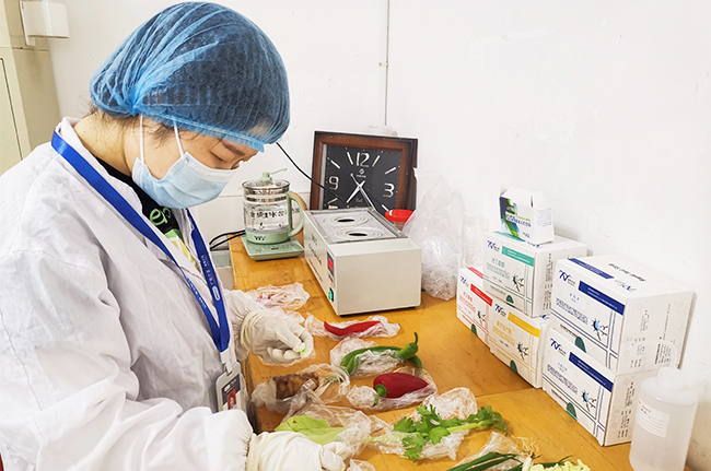 凌晨5點,技術人員早早到達考場,用不到3個小時的時間,完成了超過150批次食材的快速檢測工作,用“食力”為廣大考生的飲食安全提供堅實保障。