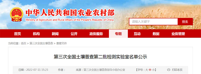 7月11日,農業農村部公布第三次全國土壤普查第二批檢測實驗室名單,廣州廣電計量檢測股份有限公司(簡稱:廣電計量)及沈陽、合肥、湖南、西安4家子公司成功入選。加上此前入選第一批名單的福州、江西、河南、南寧、成都5家實驗室,目前廣電計量全國共有10家實驗室入選土壤普查檢測實驗室名單。