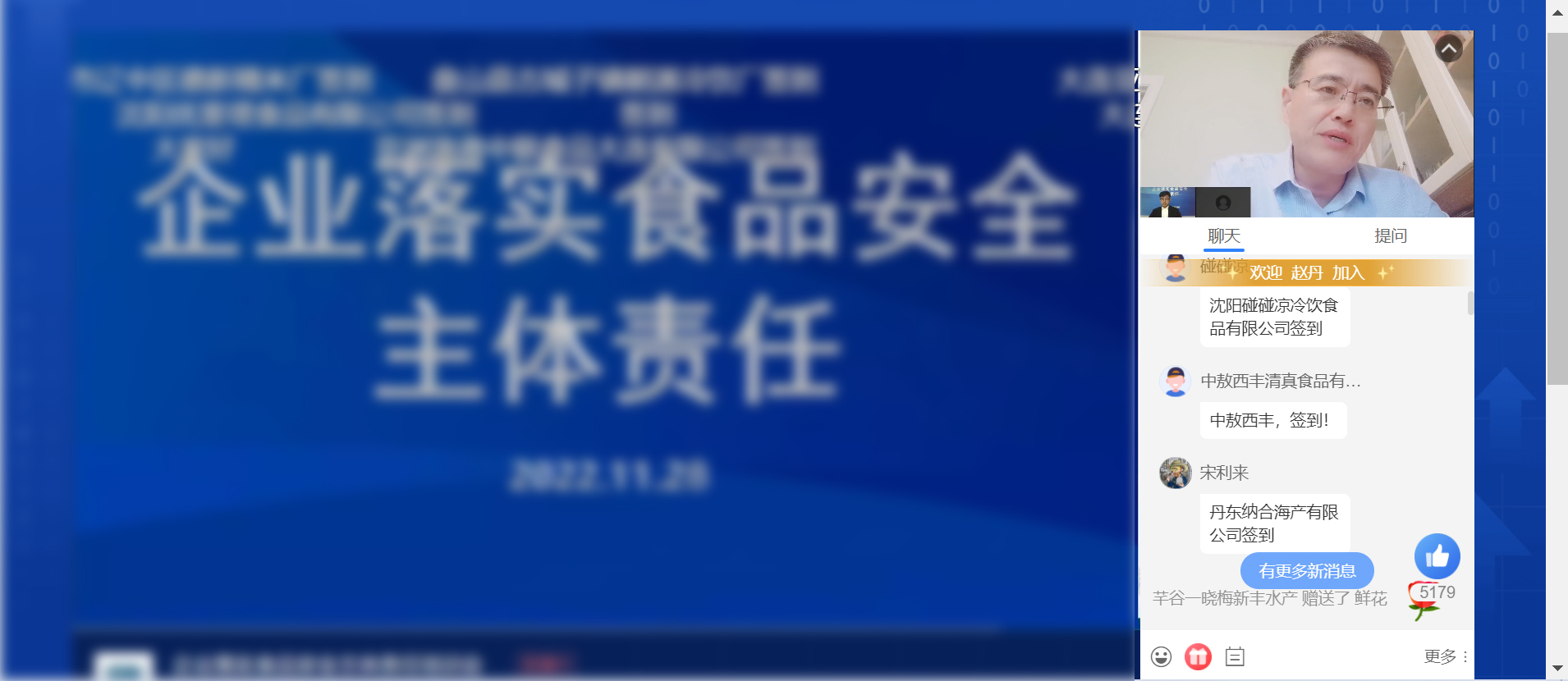 11月28日,廣電計量培訓事業部與遼寧省市場監督管理局合作舉辦了《企業落實食品安全主體責任網上培訓班》,吸引超5000家食品企業參與。遼寧省市場監督管理局食品生產處處長胡明超、副處長沈德元出席會議,結合遼寧省對《規定》的實施方案提出工作要求。