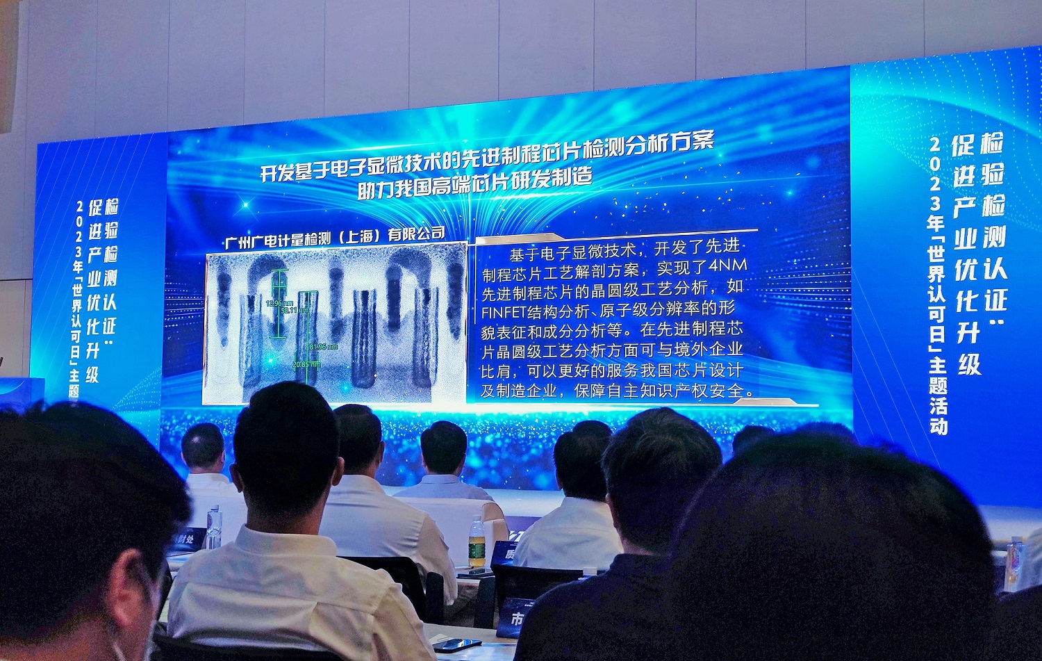 為迎接第16個“世界認可日”和提高上海市檢驗檢測認證行業的影響力,上海市市場監督管理局在6月8日舉辦了“檢驗檢測認證促進產業優化升級”主題宣傳活動。廣電計量的芯片檢測案例“開發基于電子顯微技術的先進制程芯片檢測分析方案,助力我國高端芯片研發制造”入選2023年上海市十大檢驗檢測創新案例,是入選機構中唯一一家市場化運營的第三方檢測機構,體現了主管部門對廣電計量助推上海高端集成電路產業發展的肯定。