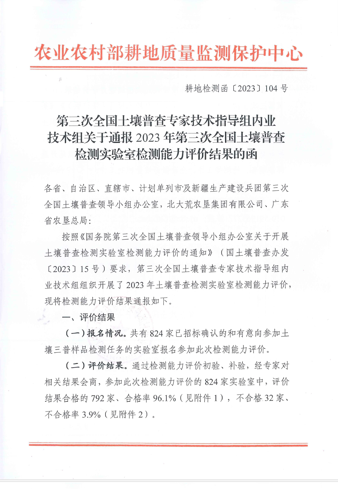 9月4日,農業農村部耕地質量監測保護中心通報2023年第三次全國土壤普查檢測實驗室檢測能力評價結果,廣電計量10家實驗室全部評為合格,技術能力與質量管控水平獲監管部門肯定。