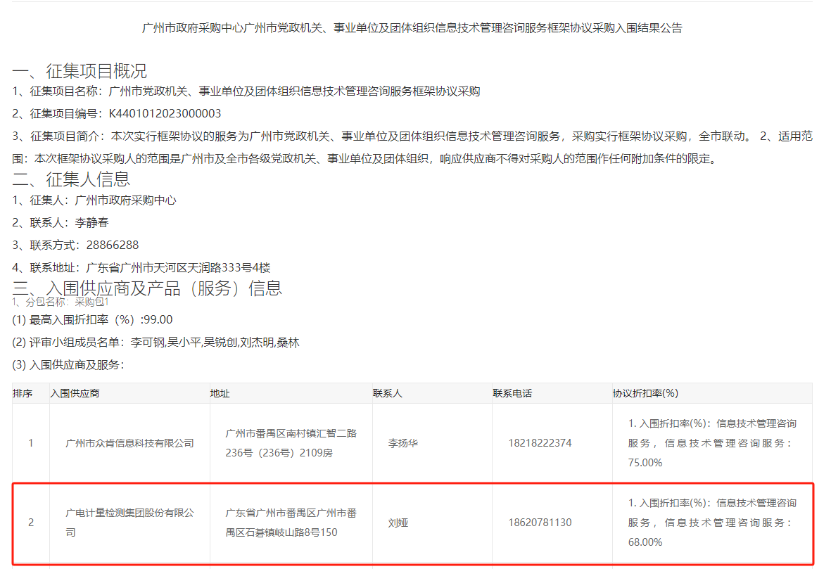 廣電計量入圍廣州市機關單位組織信息技術管理咨詢服務項目