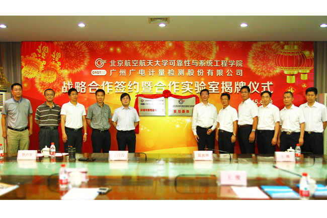 2015年6月18日,廣州廣電計量檢測股份有限公司(以下簡稱:廣電計量)與北京航空航天大學(以下簡稱:北航)在北京舉行“產(chǎn)學研”戰(zhàn)略合作簽約與合作實驗室揭牌儀式。根據(jù)協(xié)議,雙方將利用各自優(yōu)勢,在學生實習就業(yè)、業(yè)務(wù)分包、科研開發(fā)、捐資助學等方面展開全方位合作,并逐步拓展雙方的合作領(lǐng)域與深度。