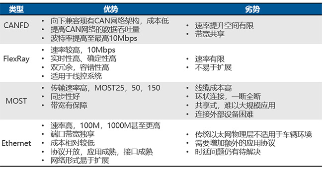 電子電氣架構(gòu)衍進(jìn)的新要求,以及智能網(wǎng)聯(lián)汽車對(duì)數(shù)據(jù)傳輸提出的新挑戰(zhàn),都決定了傳統(tǒng)的總線技術(shù)(以CAN/LIN為代表)無(wú)法滿足某些特定域的信息傳輸及主干網(wǎng)大規(guī)模的信息交互。