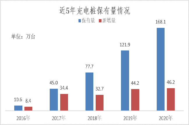與此同時,近五年充電樁的保有量也在持續(xù)增長,截至2020年12月,全國公共充電樁和私人充電樁總計保有量為168.1萬臺,同比增長37.9%。其中,充電聯(lián)盟成員單位的公共類充電樁約80.7萬臺,私有充電樁約87.4萬臺,產業(yè)發(fā)展迅速。