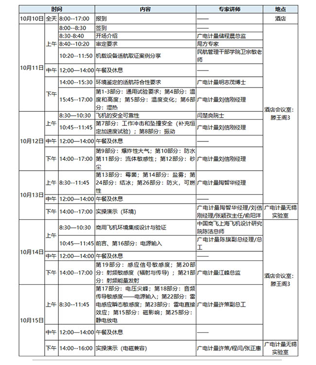 為幫助民航機(jī)載設(shè)備適航管理設(shè)計(jì)、試驗(yàn)測試等人員提高對標(biāo)準(zhǔn)的認(rèn)識水平,廣電計(jì)量將于10月11-15日在無錫舉辦RTCA DO-160G《機(jī)載設(shè)備環(huán)境鑒定和試驗(yàn)程序》標(biāo)準(zhǔn)培訓(xùn),通過基本技術(shù)內(nèi)容、試驗(yàn)案例和實(shí)際操作演示相結(jié)合的方式,為參訓(xùn)人員提供全面、深入的試驗(yàn)標(biāo)準(zhǔn)解讀以及與需求、設(shè)計(jì)、適航和技術(shù)標(biāo)準(zhǔn)規(guī)定(TSO/ETSO/CTSO)相適合的全局理解。