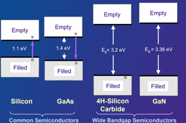 圖:各種半導體禁帶寬度示意圖