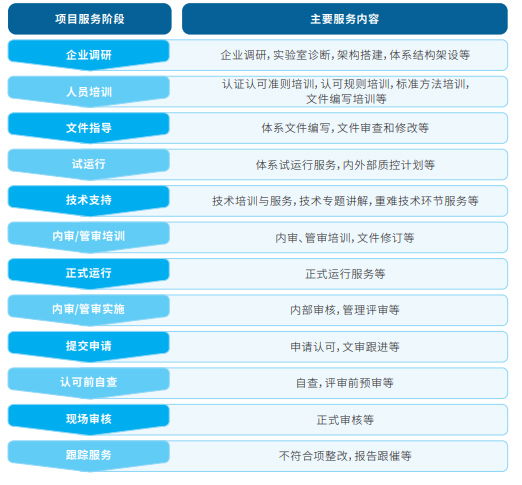 我們重點(diǎn)面向各行業(yè)企業(yè)、三方檢測(cè)機(jī)構(gòu)等自建實(shí)驗(yàn)室,提供全面專業(yè)技術(shù)服務(wù)及相關(guān)的培訓(xùn)課程,根據(jù)企業(yè)所處的行業(yè)、項(xiàng)目進(jìn)度的不同特點(diǎn),量身定制“專人、專案、專責(zé)”的個(gè)性化服務(wù),貼合企業(yè)客戶需求。具體服務(wù)流程如下: