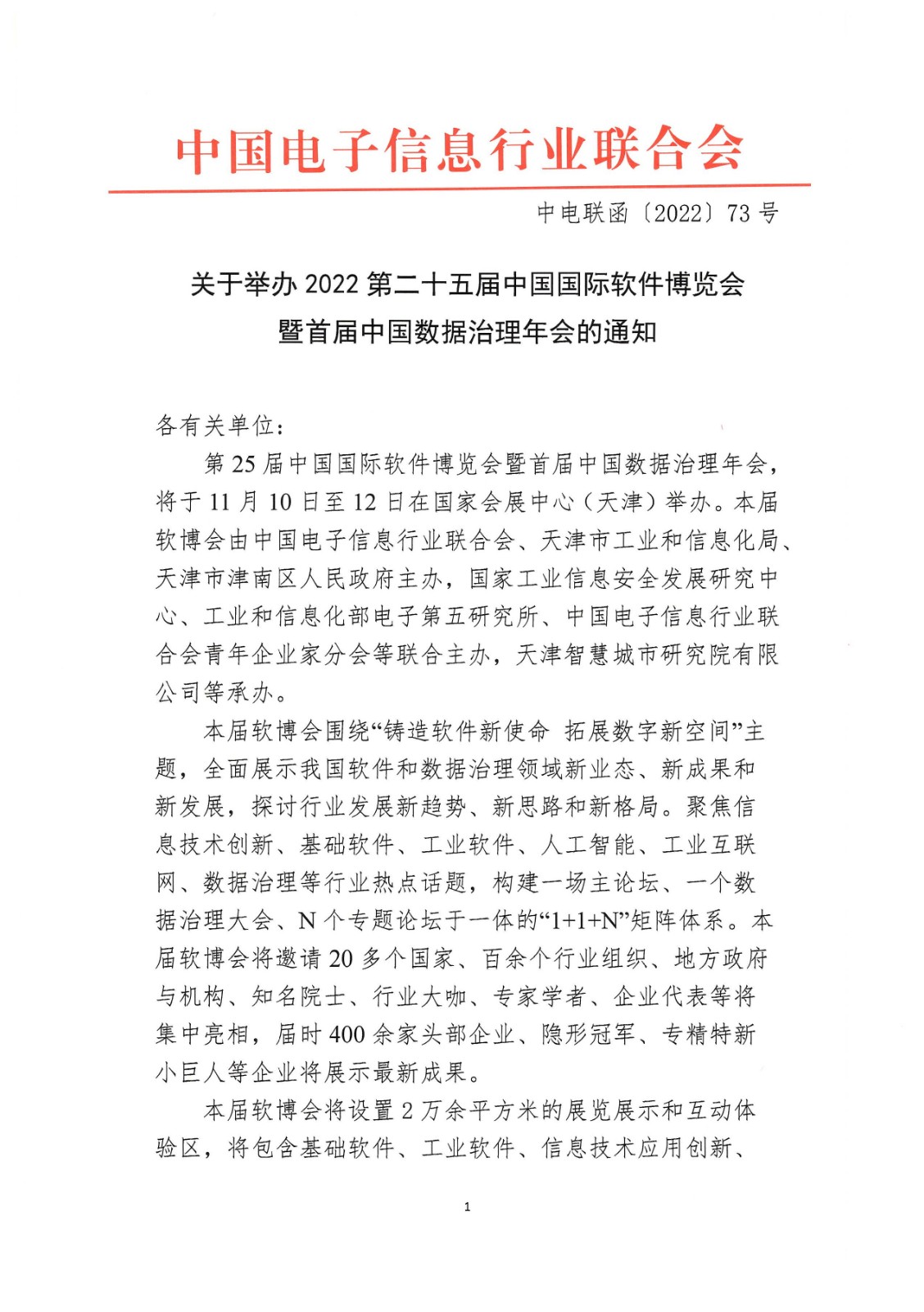 附件:關(guān)于舉辦2022第25屆軟博會(huì)暨首屆中國(guó)數(shù)據(jù)治理年會(huì)的通知