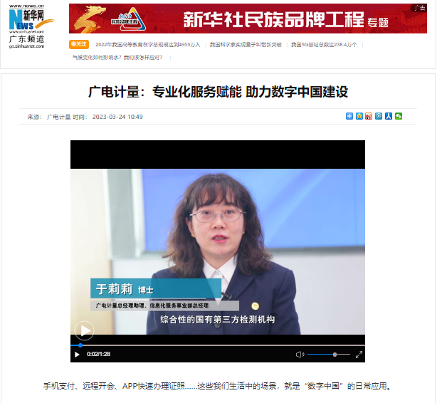 日前,廣電計(jì)量總經(jīng)理助理、信息化服務(wù)事業(yè)部總經(jīng)理于莉莉博士受邀接受新華網(wǎng)廣東頻道采訪,暢談數(shù)字經(jīng)濟(jì)新發(fā)展新機(jī)遇,并介紹公司在信息化檢驗(yàn)檢測(cè)領(lǐng)域的技術(shù)能力與標(biāo)準(zhǔn)建設(shè)參與情況,以“全、專(zhuān)、高”的技術(shù)服務(wù)助力數(shù)字中國(guó)建設(shè)。