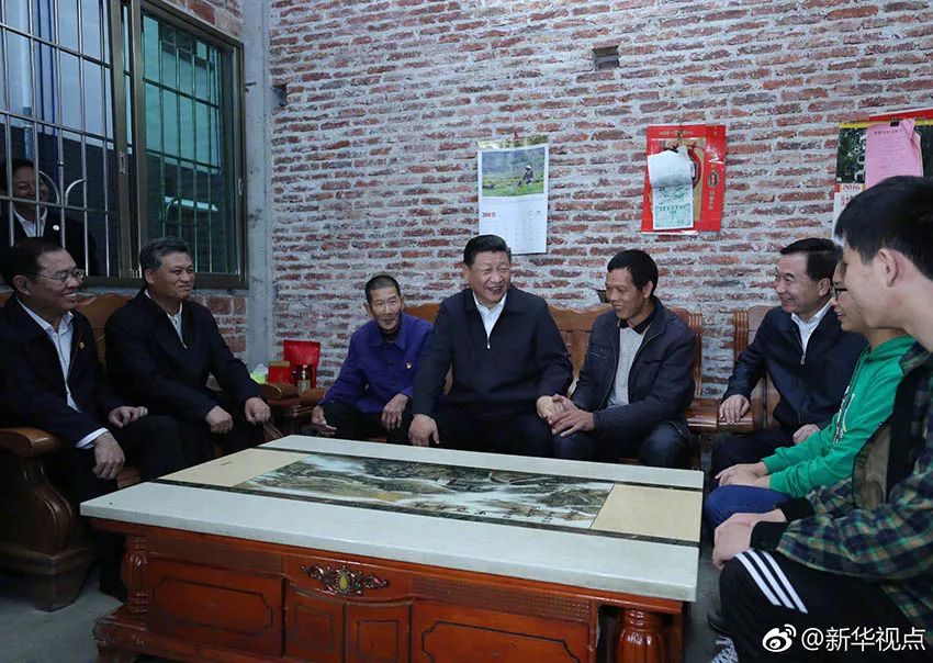 10月23日下午,習近平一行沿著崎嶇的山路乘車來到廣東省英德市連江口鎮連樟村,走進村公共服務站、扶貧玩具加工廠車間和貧困戶家中,同村民們親切交談。習近平說:“黨支部帶領大家一任接著一任,我們的父老鄉親們也是一代接著一代,推動我們的社會主義建設。我們在脫貧以后還要致富,還要走一個現代化的道路。我們現在正在這樣的一個路程上。”