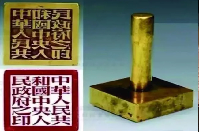 在中央人民政府及其所屬和下屬機(jī)構(gòu)法定名稱確定后,1949年10月27日,齊燕銘將鐫鑄中央人民政府及所屬(下屬)各機(jī)構(gòu)印信報(bào)告及鑄印設(shè)計(jì)說明上報(bào),得到批準(zhǔn)后,首批印信交付刊鑄。10月31日,中央人民政府印鐫刻完成并上交。國(guó)印印文要求排列對(duì)稱,最終確定為“中華人民共和國(guó)中央人民政府之印”,之所以加入“之”字,是為了讓印文分3排,每排5字對(duì)稱地鋪滿印面,使得印章更加美觀。