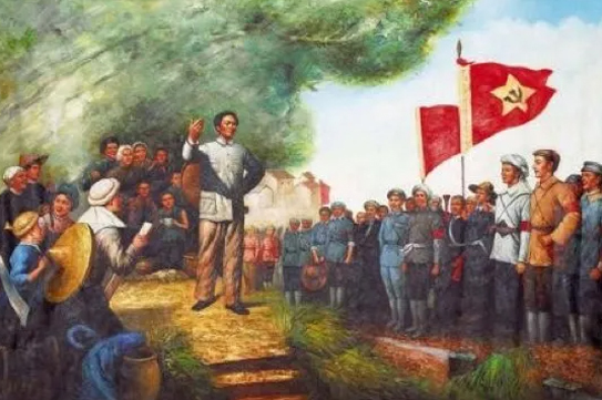 1927年10月3日清晨,毛澤東向部隊發表講話,并繼續向井岡山開進,很快建立了全國第一個農村革命根據地。