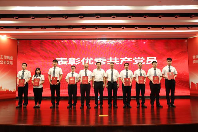 謝春霖(右五)與趙倩(右六)為公司“優(yōu)秀共產(chǎn)黨員”獲獎(jiǎng)代表頒獎(jiǎng)