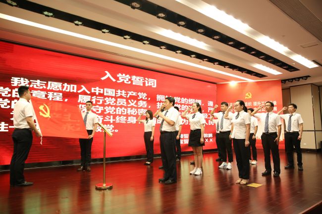 鮮紅黨旗指引前進(jìn)方向,鏗鏘誓言詮釋忠誠(chéng)。廣州總部會(huì)場(chǎng),在黃敦鵬帶領(lǐng)下,25名新黨員和全體黨員起立,面向黨旗,舉起右手,握拳過(guò)肩,莊嚴(yán)宣誓。大家表示,要忠實(shí)踐行黨旗下的錚錚誓言,在工作實(shí)踐中彰顯黨員本色,在公司改革發(fā)展中發(fā)揮“黨員先進(jìn)性”作用,為推動(dòng)公司高質(zhì)量發(fā)展建功立業(yè)!
